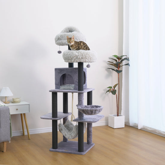 Built with multiple levels to climb, rest, and play. Cozy condos, beds, and hammocks create plenty of options for lounging, while scratching posts and toys encourage natural, healthy behaviors. It’s comfort and entertainment for your cat, with style and durability for you.
